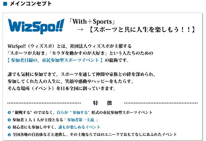 ウィズスポのスタッフはみな「スポーツ」に育てられた、「スポーツ」に愛のある人間ばかりです。 私たちは、全国各地に地域に密着したスポーツイベントを根付かせていくことに、「魂を込めて」取り組みます。POINT.2 「企画」・「運営」のスペシャリスト集団