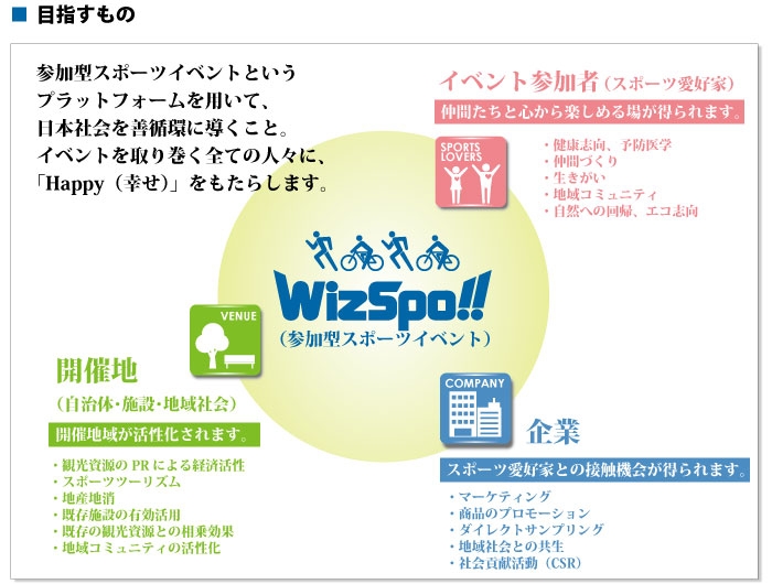 私たちは、全ての業務において常に「参加者第一主義」を思考プロセスの土台において行動します。 参加型スポーツイベントを1つのプラットフォームと見るとき、もっとも重要なポイントは「参加者の満足度」であり、それがイベントの成功及び、継続発展、ひいては開催地・協賛企業などへのメリット(=善循環)をもたらすことにつながっていくからです。
